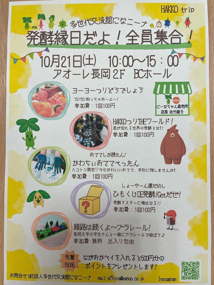 こそだての駅「ぐんぐん」を運営している「多世代交流館になニーナ」が、発酵縁日を企画!